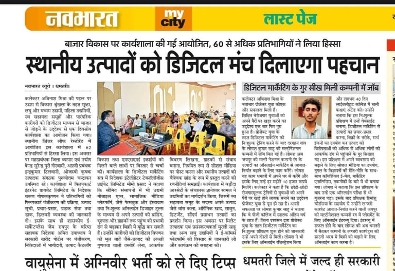 To give a digital identity and market reach to local small businesses and self-help groups in Dhamtari through training and skill development.